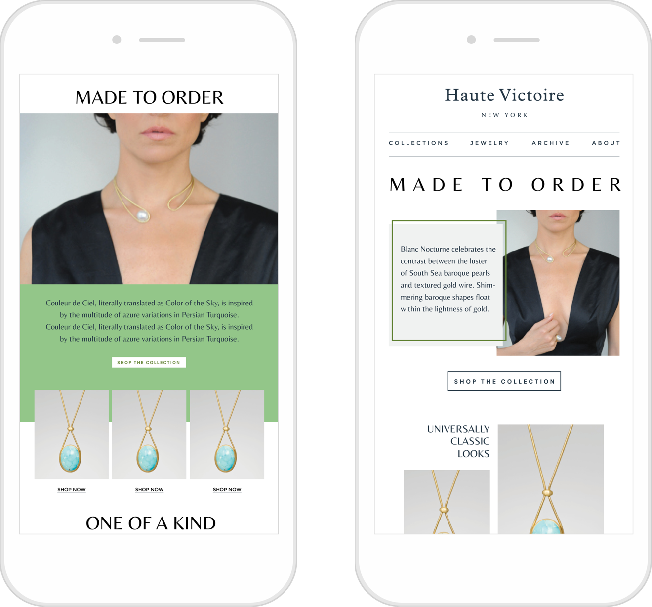 To promote the brand and its products, we created different designs for the newsletter for the client to select. The final design helps drive the brand's relevance while also highlighting Haute Victoire's new products.